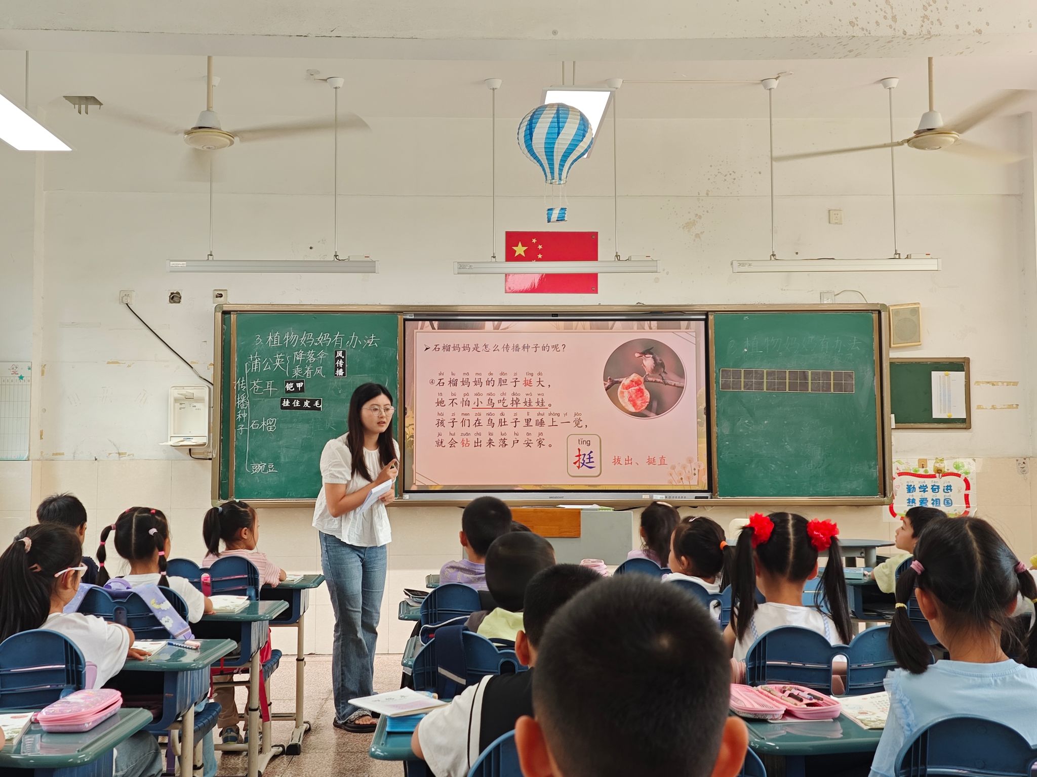 教学中,教师以生动的板贴和多媒体资源再现蒲公英、苍耳、石榴、豌豆等植物传播种子的过程。通过小组合作学习、关键词句品读、观察比较等策略,引导学生自主发现不同植物妈妈的"好办法"。课堂注重语言实践,组织学生仿照课文句式进行表达训练,在语言运用中深化对"炸开""挂住""观察"等词语的理解,同时渗透仔细观察、探索自然的科学态度。
