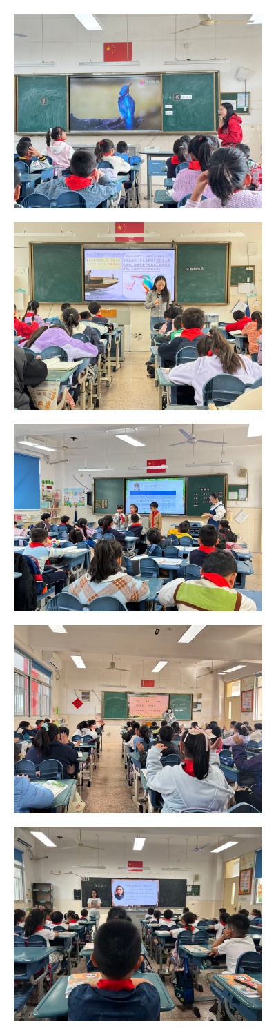 9月8日,卞璐瑶老师执教《不懂就要问》通过三个任务串联整节课,引导学生自主探究。10月24日,李新老师执教《葡萄沟》,通过词句段的训练,引导学生夯实基础。11月11日——12日,唐叶静老师和茅志叶老师共同执教《搭船的鸟》,唐老师教学能力扎实,一步步引导学生梳理全文脉络;茅老师则引导学生走出课文,进行写话训练,提高学生的写作能力。12月9日,马晓攀老师执教《大自然的声音》带领学生聆听美妙声音,激发了学生热爱大自然的情感。