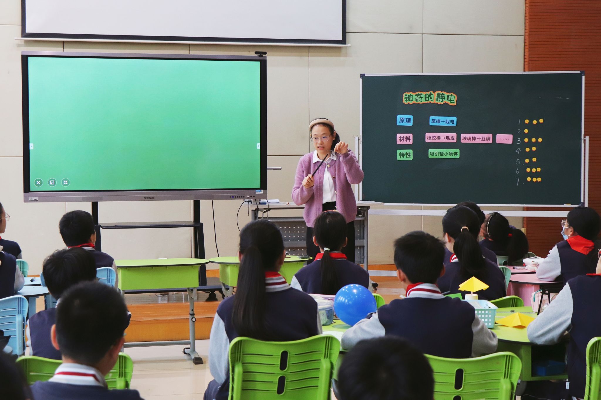 为了充分展现综合实践活动课程“在做中学、在创中思”的独特魅力,10月30日,沈岚老师执教了一堂别开生面的公开课——《神奇的静电》。课堂通过丰富有趣的实验活动,引导学生探索静电现象,激发科学探究兴趣,展现了综合实践课程的独特魅力。