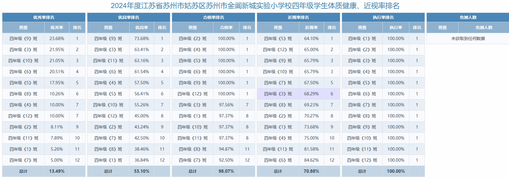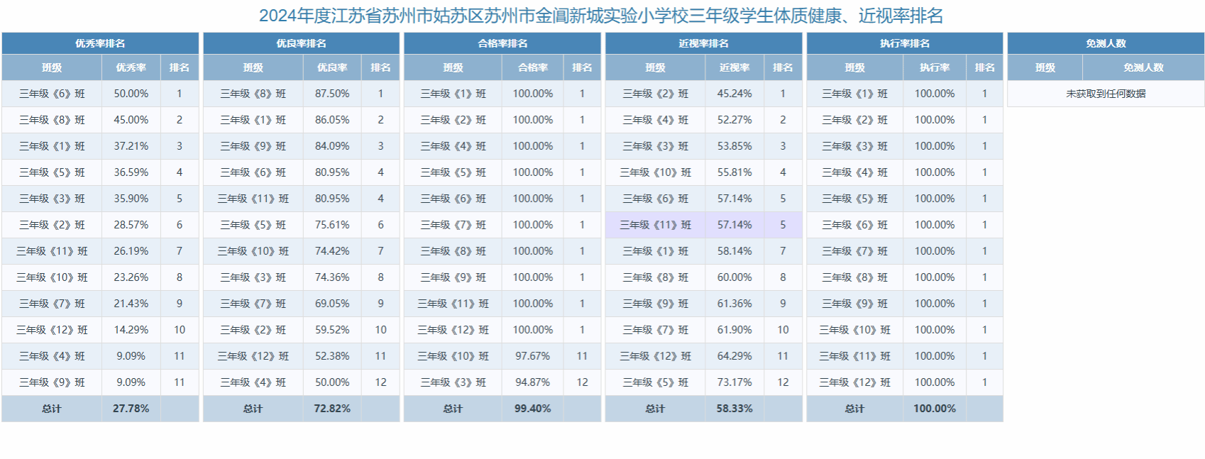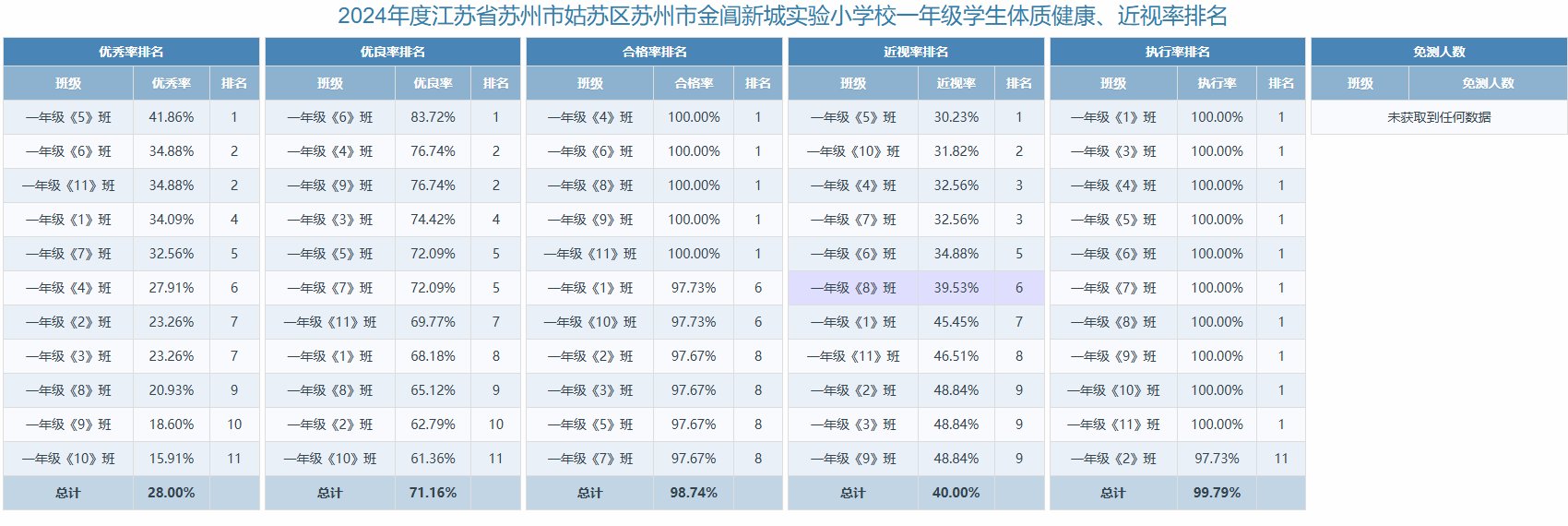 2024年度江苏省苏州市姑苏区苏州市金阊新城实验小学校学生体质健康、近视率排名