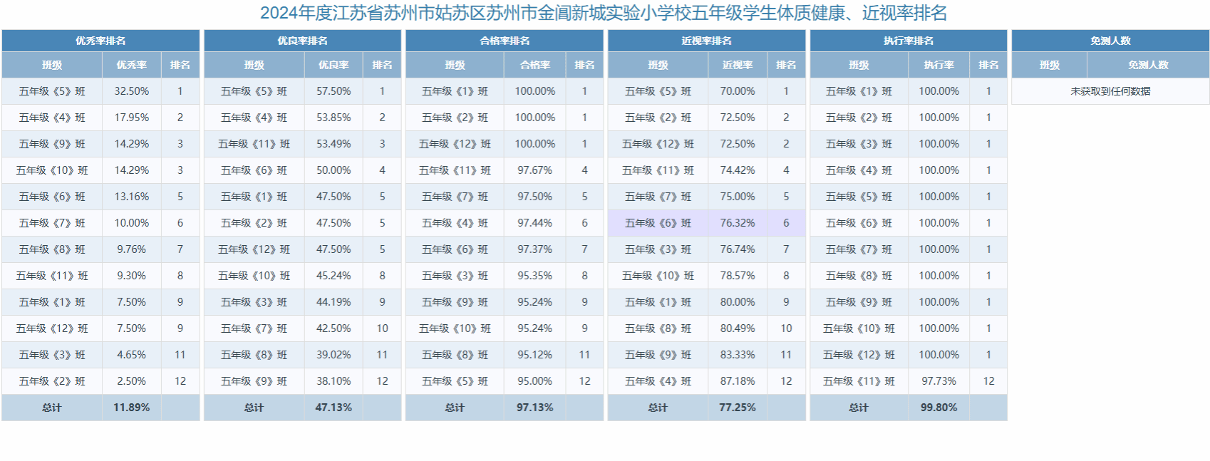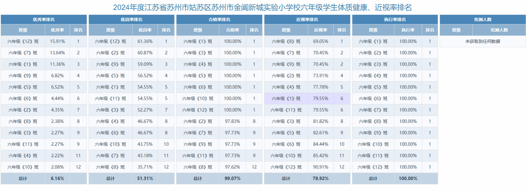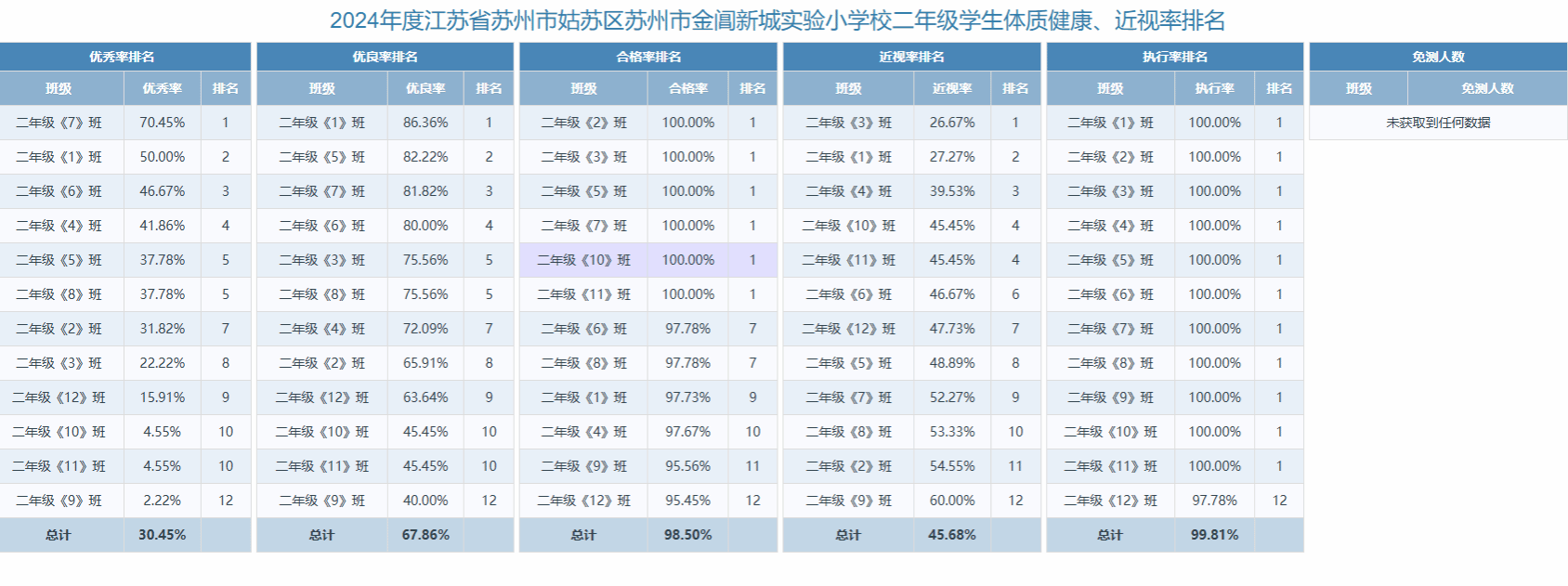 2024年度江苏省苏州市姑苏区苏州市金阊新城实验小学校学生体质健康、近视率排名